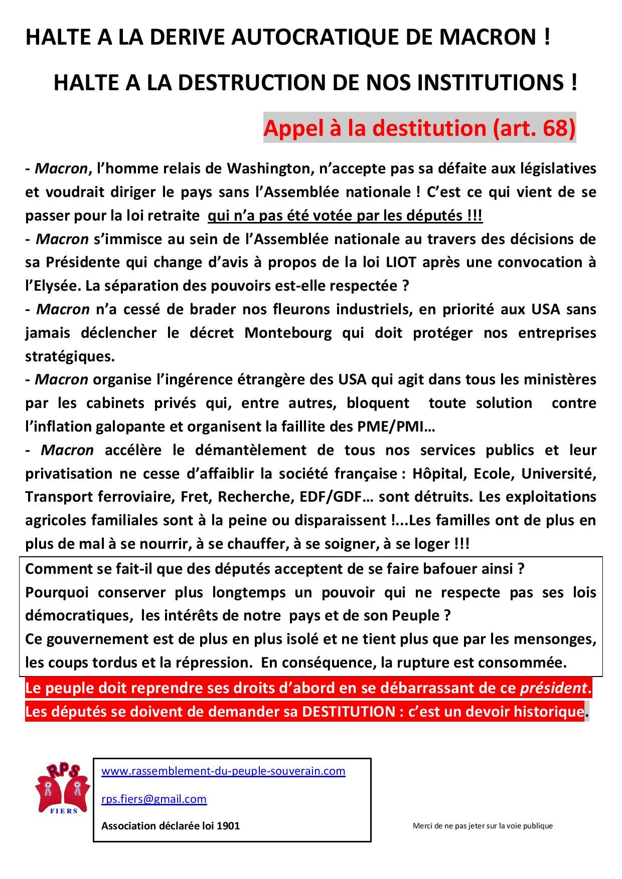 LA FRANCE EN DANGER : APPEL A LA DESTITUTION