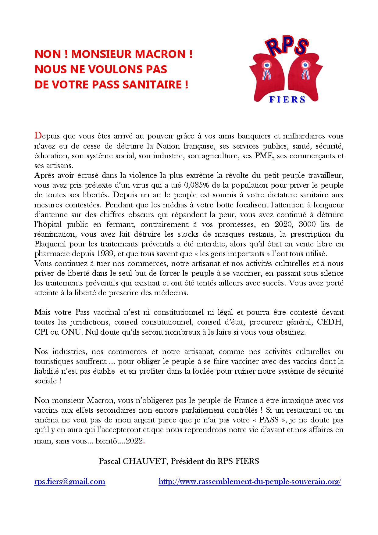 C’est au peuple de dire à monsieur micron et à toute sa clique qu’ils doivent partir, qu’ils ont trahi leur propre peuple, qu’ils ne font pas ce pourquoi ils ont été élus, servir le bien commun, et qu’ils doivent s’en aller, s’il le faut par la force de notre armée nationale.