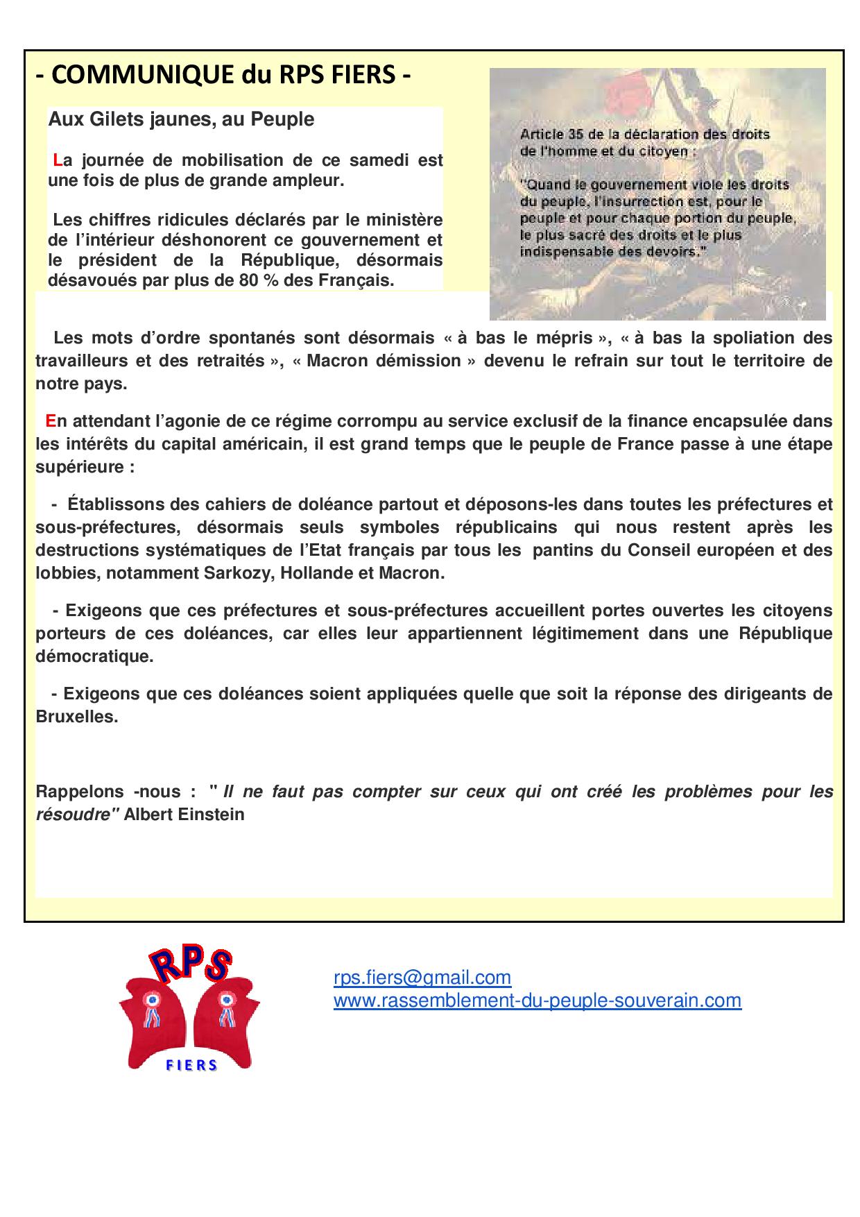 ALORS, APRES LES GILETS JAUNES, APRES LES SYNDICALISTES, C’EST TOUT LE PEUPLE DE FRANCE QUI DOIT ARRÊTER DE TRAVAILLER ET QUI DOIT SORTIR DANS LA RUE, C’EST UNE QUESTION DE SURVIE POUR TOUS ET POUR CHACUN !