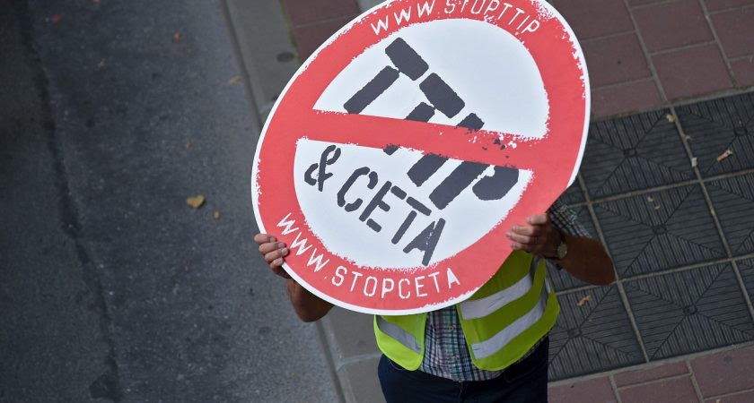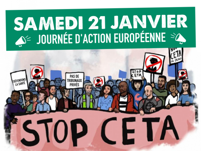 L’accord de libre-échange entre l’UE et le Canada, le CETA, doit être signé le 27 octobre à Bruxelles entre l’Union européenne et le Canada. La société civile est largement mobilisée contre cet accord commercial dont elle craint les impacts négatifs sur l’emploi, le service public, le droit du travail, l’environnement et l’alimentation.